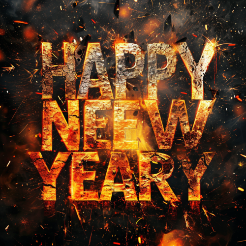 a new years celebration with the words ‘Happy New Year’ on it in heavy metal jagged font. --v 6.0
