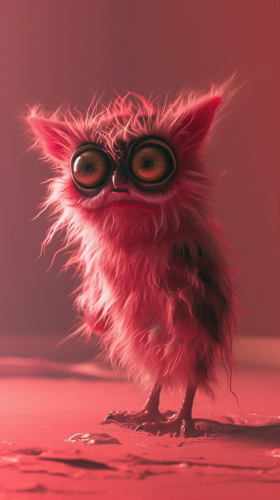 furby from the future, Surrealist, 1974, weird, buldging eyeballs model, in the style of surrealist Wes Anderson, matte photo, punk, bold lines, vivid colors, zoomed out, full body, contrasting colors, rule of thirds, hyper realistic --ar 9:16 --weird 100 --v 6.0