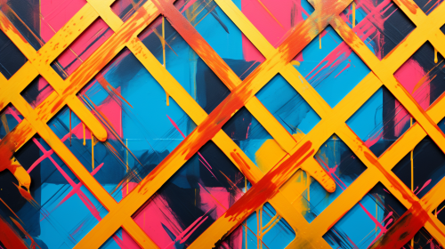 2d graffiti with heavy lines and fine brush look of an intricate argyle plaid pattern, vintage saturated colors with bright gold lines, --ar 16:9