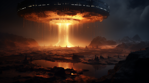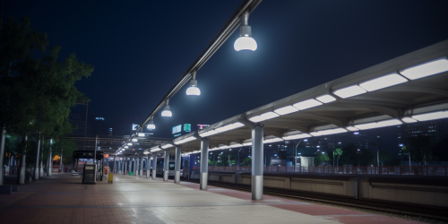 central metal platform connected walkways:: series of bright lights above:: 18mm f/1.2, iso 100, 8K, photorealistic, cinematic shot --ar 2:1 --v 5.2 --style raw --chaos 10 --no sky --s 50