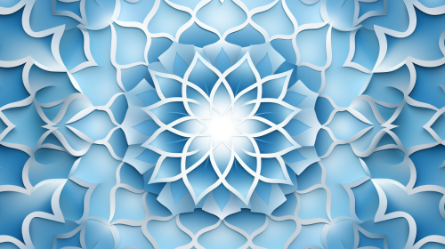 Islamic Background, White and Blue Arabic Islamic Elegant Background with Arabic Pattern --ar 16:9 --v 5.2