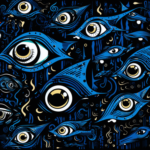 Incorporate the Fibonacci spiral or golden ratio into the eye's design of an apex predator., only the eye is visible