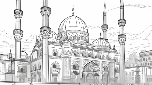 Coloring book line art style Grande Mosquée de Grozny --ar 16:9 --v 5.0