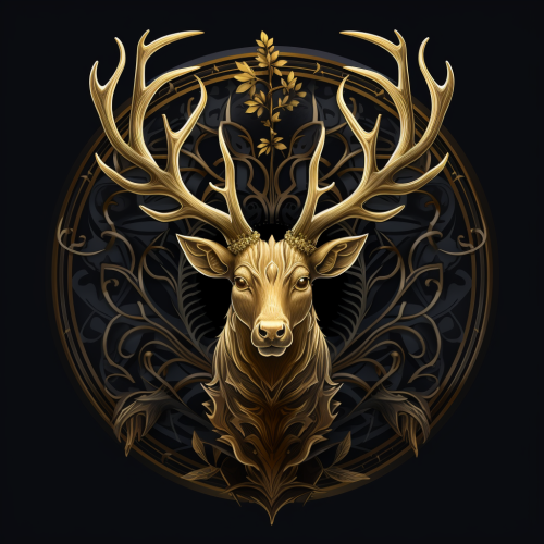 a mascot logo, a stag head cabossed with a tree of life as the antlers