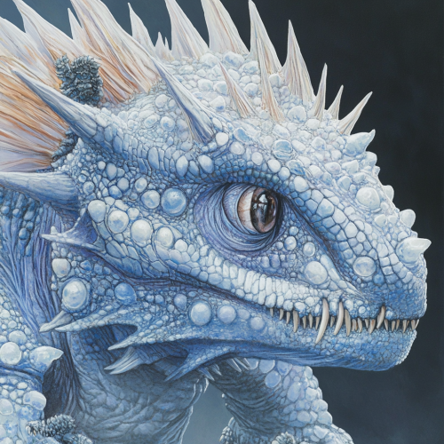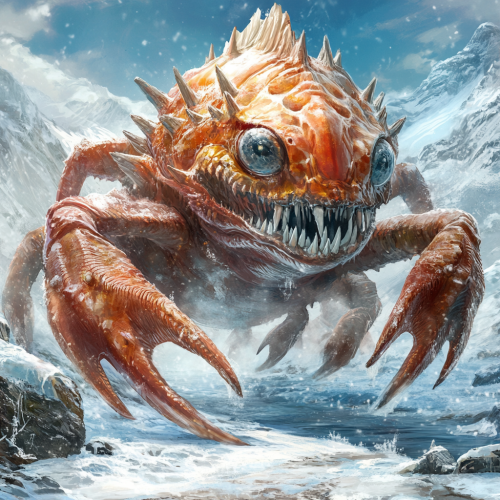 Frostlurks are gargantuan, bipedal monstrosities. The have thick and impenetrabletranslucent scales. Their hands are like eagle talons. They have long, fish like teeth. Their eyes are compound like a spiders. They have frills on the side and top of their head. And you can see the cold radiate off them.