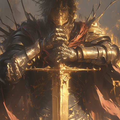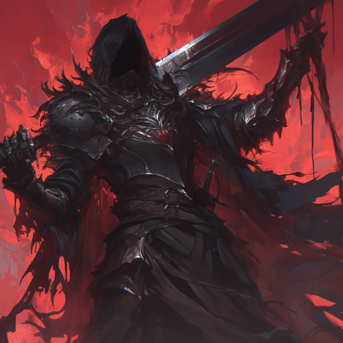Grimdark mystic medieval ominous depraved crusader yielding a massive blade, anime style, fantasy, digital art, masterpiece painting, ultra detailed, ultra high definition, 8K resolution, 3D shading, superior quality, cover illustration, complex design, luminous highlights, rich colours, hyperrealistic, meticulously hyper detailed, high contrast, artstation --niji 6 --s 1000