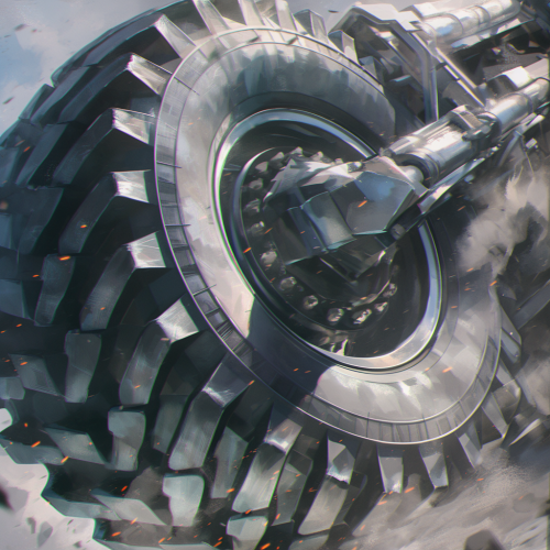 Um touro muito grande, com grandes chifres em frente a um pneu de caminhão visão em close-up, estilo anime, fantasia, arte digital, pintura de obra-prima, ultradetalhado, ultra alta definição, resolução 8K, sombreamento 3D, qualidade superior, ilustração de capa, design complexo, destaques luminosos, cores ricas, hiper-realista, meticulosamente hiperdetalhado, alto contraste, artstation --niji 6 --s 1000