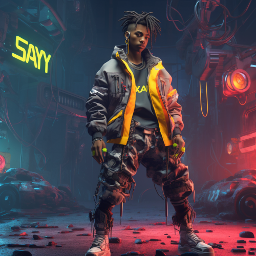 Mix Studio Ghibli style animation and CyberPunk 2077 style art direction, cyber-punk 21 savage inspired teen, yeezy styled ,style anime style , holding a futuristic with SMG with a strong yeezy adidas fashion sense,