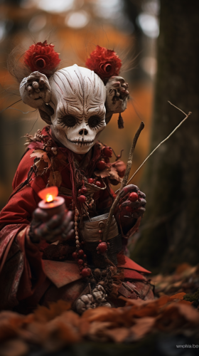 in an anime art style, studio ghibli style, a portrait of a cult looking man looking wearing a dark mask, dark undertones, contour, high definition