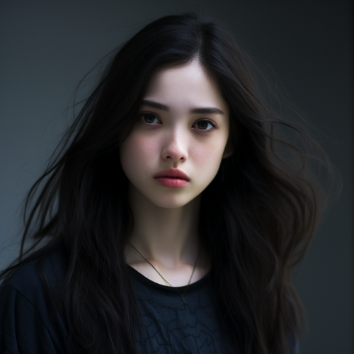 20 years old, Japanese female, beautiful, dark hair, downcast eyes