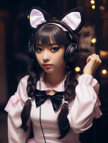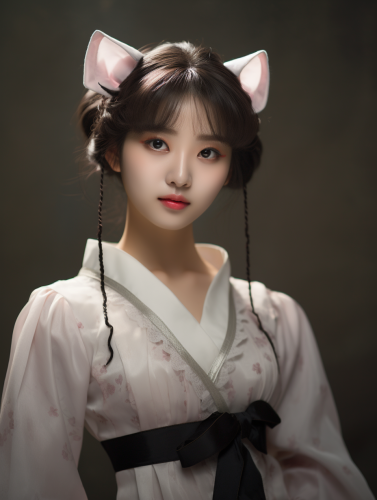 Korean girl in Maid costume wear cat ear headband, Detailed, Fantasy –-sameseed 20 --ar 3:4