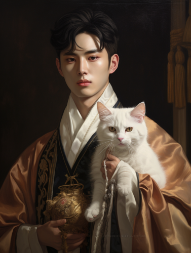 Korean Men in Maid costume with cat hair pin, Detailed, Fantasy –-sameseed 20 --ar 3:4