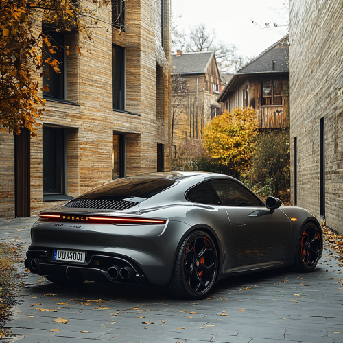 alfa romeo di nuova generazione dalle linee minimal e pulite simili a quelle di polestar, vista di 3/4 posteriore ed anteriore. fari anteriori uniti assieme allo scudo. fari posteriori a striscia continua stile porsche 911 v 6.1 --s 750 --style raw