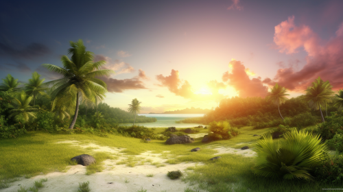 paradise, beautiful panoramic landscape, new oportunities, grateful , bright, photorealistic, high resolution, rectangular, vibrant colors, perfect for a PowerPoint background, cinematic lighting, 16:9 aspect ratio --ar 16:9 --v 5.0