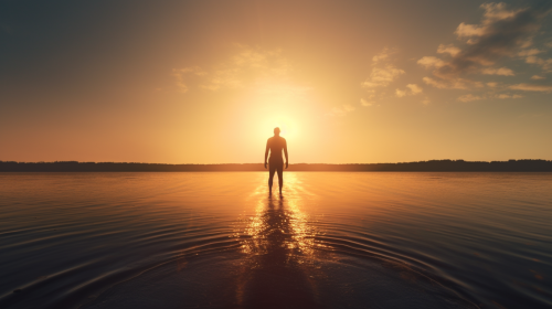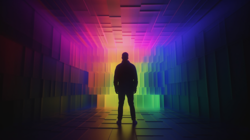 abstract background, a man symbolizing the power of itself, photorealistic, for power point background, rectangular, vibrant colors, , cinematic lighting, 16:9 aspect ratio --ar 16:9 --v 5.0