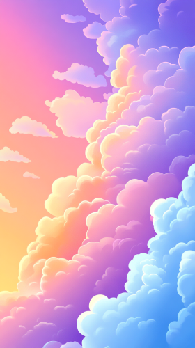 A whimsical pastel sky with fluffy clouds in soft peach and lavender, gently catching the light and blending into a smooth, gradient background from pale pink to light blue--soft and serene. --ar 9:16 --style raw --s 250