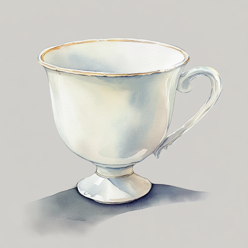 highly detailed watercolor clipart of a white period cup, soft colors, beautiful illustration with realistic details, high resolution, gray background