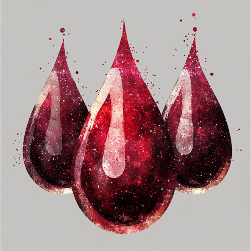 highly detailed watercolor clipart of drops, dark red drops with red glitter dust, soft colors, beautiful illustration with realistic details, high resolution, gray background