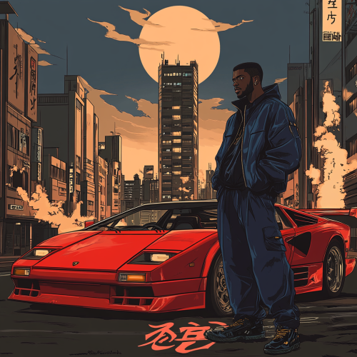 City lights, Long street of cars, graffiti, Food trucks, Bright lamp poles over the streets, Stars in the sky from dark space next to a beautiful sunset, Painted with a brush and heavily solid paint, Abstract drawings. white background. Seasonal printable patterns --tile --v 6.1