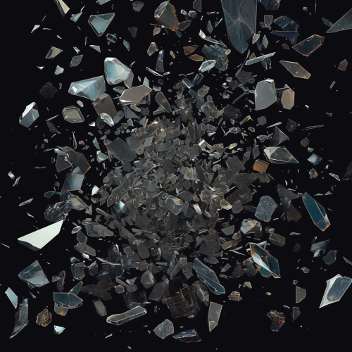tiny rock fragments and debris are spreading in arcs to the right bottom direct. uncomplicated form. each far distance. on black solid background. --niji 6