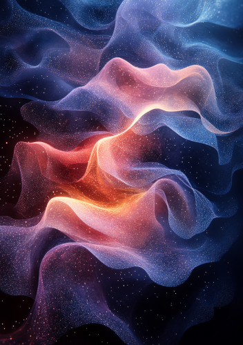 Color Scheme: Primarily deep navy blue, black, and muted purple tones, giving it a sleek, futuristic look. Central Focus: A dark central area, ideal for placing white text on top for high readability. Textural Elements: Smooth, abstract, cloud-like formations with subtle gradients and soft waves that create a sense of mystery and an ethereal nighttime atmosphere. like a space nebula landscape. Subtle Details: Minimalistic dotted patterns and faint circular outlines around the edges, adding a slight tech-inspired or digital feel without being too prominent. Overall Composition: The design is clean and minimalistic, with the dark tones concentrated in the center, fading into softer colors toward the edges to create a subtle frame effect. There are no strong focal points or extraneous elements, making it ideal as a background image for an app landing page. there should be no solid lines or shapes in the center, to not conflict with the white text that will be added later --ar 3:5 --s 750