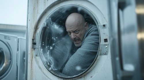 P Diddy with a white beard, dwarf-sized, wearing a sparkling performance suit, holding a tiny microphone, in an undersized music studio –v 6.1 , --ar 9:16