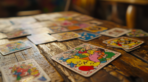 the back of a card in a fun card game called 'drawn together' , it's a game like Pictionary but where you have to draw two things together to make a pun like Madonna kebab --ar 16:9