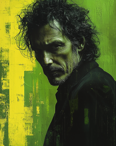 A full body geometric vector art graphic of Ozzy Osbourne, composed of precise shapes and patterns; limited to two base colors and their shades; crisp lines and symmetry create a visually striking image; professional, detailed artwork with a contemporary edge --ar 4:5 --s 750 --q 2 --v 6.1