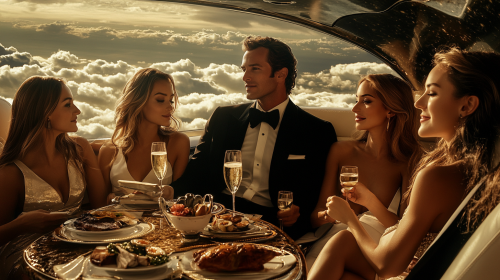 : HD Artistic photo in the audacius style of Beyonce dancing with friends in an elite party bus at a TEXAS nightclub. They have long blonde LONG PONYTAIL, ofcurvy woman.She wears a mi ,white boy tanktop with black leather shorts, wearing tall rhinestone boots with a luxurious and striking style, abundance of jewelry, sunglasses with diamond red frames, intrce jewlprints, desafiant, extravagant, barroque escene --ar 3:4 --v 6.0