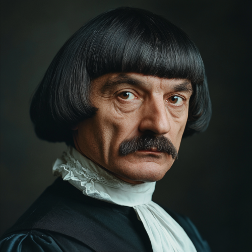 Portrait of René Descartes with crew cut hairstyle, modern technology, portrait expression, GQ magazine cover, high quality photo taken with Sony full frame camera, portrait by famous photographer, realistic, attractive colors.