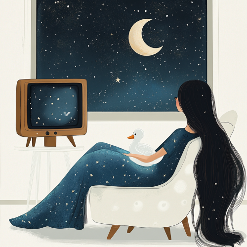 4K,first-person view, boyfriend pov of sweet-looking 22 years old korean woman, the woman is wearing a white mini dress, black hair, hair spread out, large innocent eyes and a mega cute smile, extending her hand invitingly ; Starry night sky with a vivid Milky Way, soft twilight glow transitioning to night, serene coastal landscape with gentle waves, subtle city lights in the distance, harmonious blend of deep blues and purples, creating a tranquil and expansive atmosphere, Canon EOS R5, 50mm f/1.8; soft evening light; fantasy scene. --ar 4:5 --style raw --v 6.1