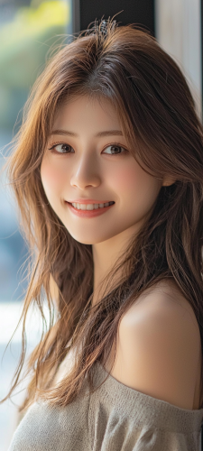 Japanese girl, Anna Miller's salesgirl, 20yo, smiling face, top actress face, beautiful combed hair, big quads, professionally filmed with a high-performance camera, --ar 9:20 --q 2 --v 6.1