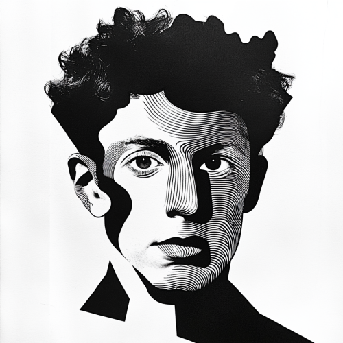A black and white minimalist portrait of Sam Altman, depicted using sharp, geometric shapes while preserving key facial features. His distinctive curly hair is represented by angular, abstract waves. His face has a strong, angular jawline formed from bold, straight lines. His eyes are small, almond-shaped negative spaces, and his eyebrows are sharp, angled lines. The nose and lips are simplified into clean, geometric forms, with his nose as a thin triangular shape and his lips as a small horizontal line. The overall design uses high contrast black and white, with no shading or soft curves, ensuring a balance between recognizable features and the abstract, geometric aesthetic. The portrait is tightly composed, with strong use of negative space.