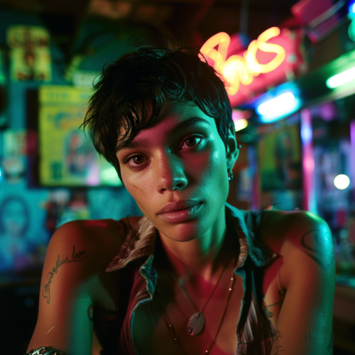 Kim Petras in the live-action "Barbie" film, filmed by Greta Gerwig, dvd screen grab, cinematic, UHD, fine detail, extremely detailed, 4k --ar 2:3