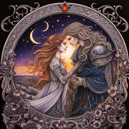 beautiful Tibetan asian modern vogue model as a constellation in the sky with a rose in her hair, hair wavy, looking far away at a brunette man in a checkered polo, floating stars and galaxies and roses