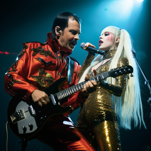 Freddy Mercury singing with Billie Eilish on the guitar in a stage