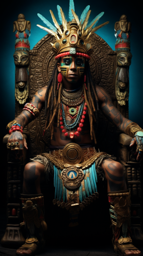 In a striking fusion of modern celebrity and ancient civilization, Lil Wayne is reimagined as a Mayan noble. Seated regally on an ornate ceremonial chair, the backdrop is a lavish Mayan court, with intricate carvings and vibrant murals. Lil Wayne's attire is a blend of traditional Mayan garments, adorned with gold and feathers, but with a contemporary twist befitting his iconic style. The focal point, however, is his signature smile. As he grins, his teeth, studded with glittering diamonds, gleam brilliantly, a nod to both his modern-day persona and the Mayan elite's penchant for dental adornments. The photograph, taken on a Nikon D850 with a 50mm f/1.4G lens, set at f/2.8, ISO 64, 1/200s, captures this unique juxtaposition, blending epochs and cultures in a single frame, --ar 9:16