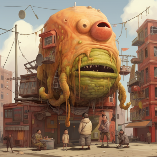 Middle Ages, the devil walks down the street in the city, digital art, brush movement, painting style