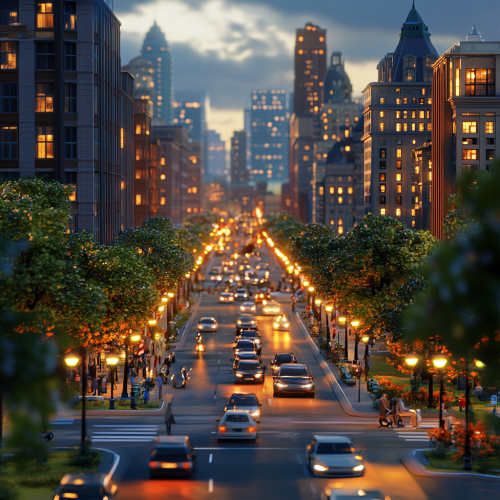 What Boston looks like, fascinating, 2024s, imaginative, realistic, photographic of the city of Boston, background Boston city view, incredible, creative, traffic in the city square 3d render, city lights, beautiful and handsome American people, summer, morning
