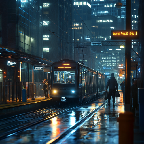 What Boston looks like, fascinating, 2024s, imaginative, realistic, photographic of the city of Boston, background Boston city view, incredible, creative, subway station 3d render, city lights, beautiful and handsome American people taking the subway, nowadays a day