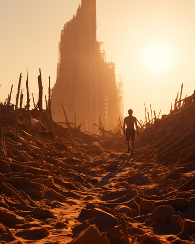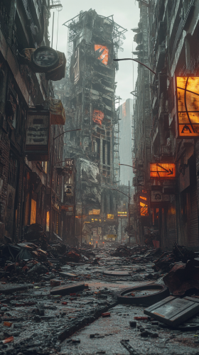 A collapsed highway bridge in the middle of an abandoned city, concrete crumbling and steel beams twisted, vines and trees growing through the cracks, rusted cars left behind, the city skyline in the distance, fog rolling in and covering the remains of the road, eerie and quiet, nature reclaiming the urban ruins, cinematic, high-resolution, 8K, UHD --s 750 --style raw --v 6.0 --ar 16:9