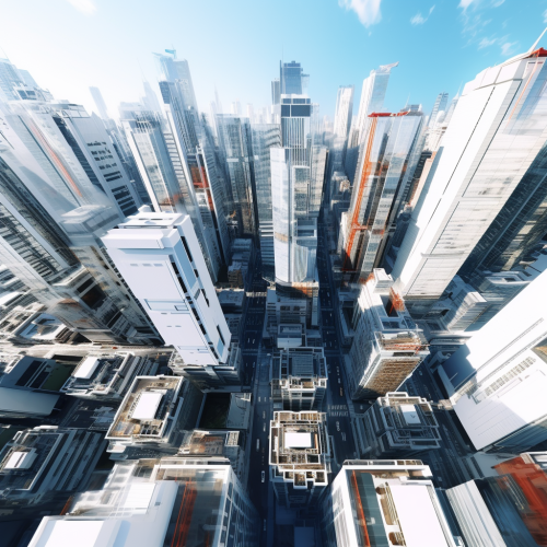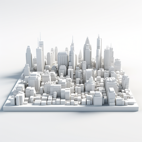 city skyline 3d white miniature view front top down view 4k 1920x1080
