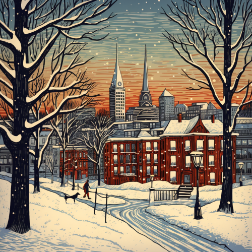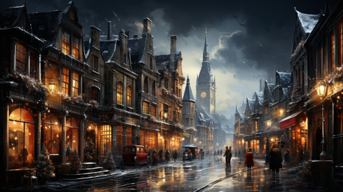 Christmas in New York. . Illuminated Christmas festival high in the mountains with quirky Christmas characters posed and arranged in a vibrant minimalist neon-lit environment. High-end. Stylish. Black and white with color splash. Clean lines. Shot with a Pentax. K-3 III Monochrome. --ar 16:9 --q 0.5 --s 750