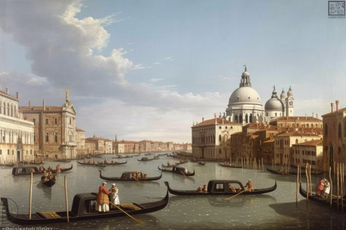 /painting by Canaletto, soft light, représenter le grand canal et la salute represent the grand canal and the salute, craquelure on the canvas --aspect 3:2 --v 5.0