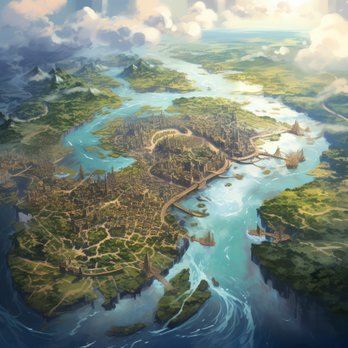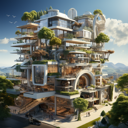 Imagine a sprawling modern city where sleek glass buildings rise alongside structures inspired by the ancient Indus Valley Civilization. Towering, stepped platforms resemble the great granaries and citadels of Mohenjo-daro, now reimagined as futuristic towers of stone and steel, adorned with intricate geometric patterns. Large public baths and water systems, a nod to the civilization’s advanced urban planning, are integrated seamlessly into the city's design, surrounded by lush gardens and modern plazas. The city's layout mirrors the ancient grid system, with broad avenues and precise, organized blocks. Streets are lined with sculptures and carvings that reflect the civilization’s artistry, while natural elements like rivers and greenery flow harmoniously with the clean lines of modern architecture. Photorealistic, shot on a Nikon camera, the scene is full of vibrant detail and light, illustrating the seamless blend of ancient wisdom and modern progress. In the style of da vinci --v 6.1