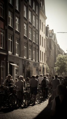 hoto of, people enjoying the essence of Copenhagen, in Vesterbro, hyper-realistic image, shot on a Nikon 35mm, bright lighting --ar 9:16 --v 5.0