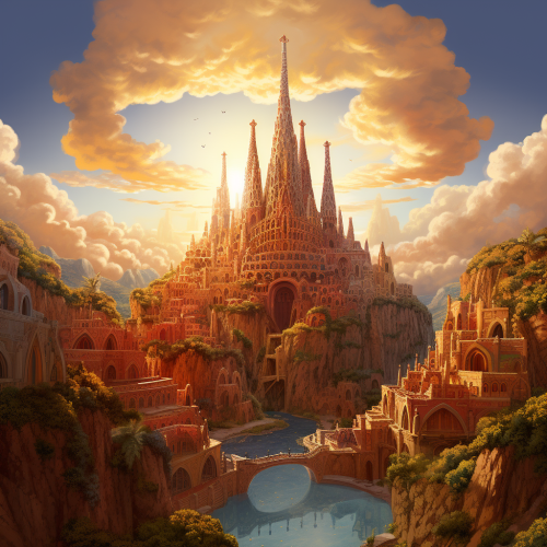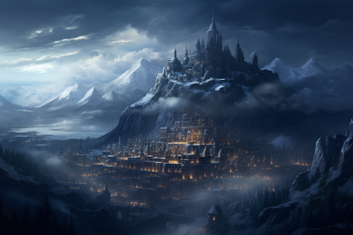 medieval fantasy city on top of the tallest mountain, old fantasy painting style, dynamic lighting --ar 3:2