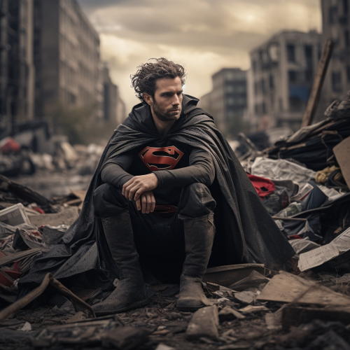 a 20 year old male firefighter on a path passing a household, sunlight, ominous, --ar 16:9 --seed 3116063080