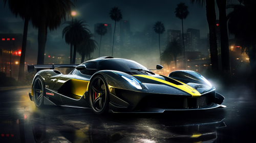 Amidst the palm-lined streets of Los Angeles, the digital art illustration captures a manly yakuza gangster behind the wheel of a hypercar. The vehicle's sleek contours complement his own air of unyielding power. The city's lights blur into streaks as he speeds through the night, a testament to the seamless fusion of man, machine, and metropolis, --ar 16:9 --v 5.0 --seed 3126551420 --s 1000 --chaos 50
