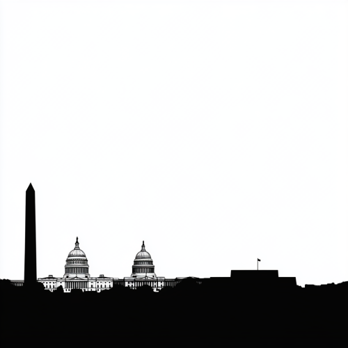 contemporary vector style graphic of the Washington DC buildings (focused on the washington monument, with the capitol building in the background) with a white/transparent background